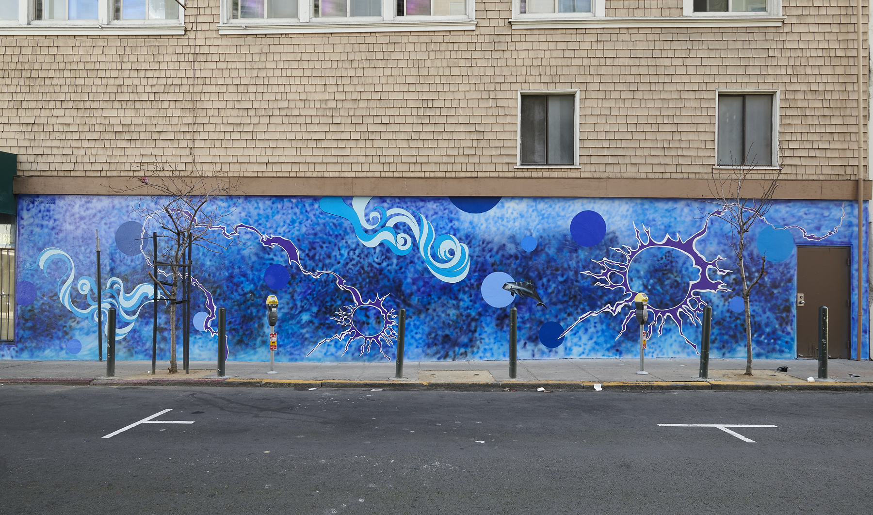 2020, 120 x 540 inches, acrylic and acrylic spray paint on stucco, sponsored by the San Francisco Arts Commission, San Francisco, CA